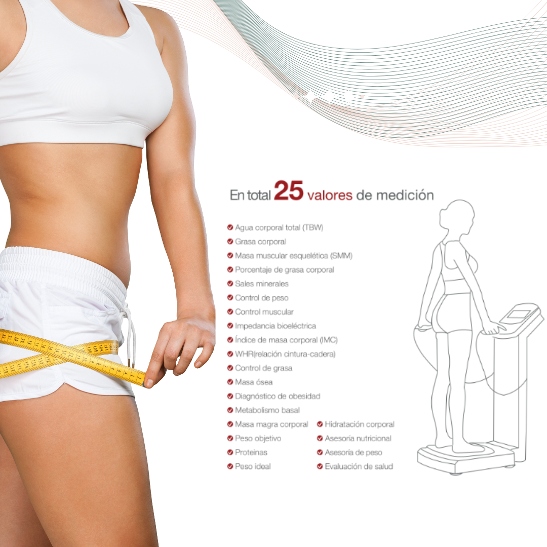 - Bioimpedanciometría Completa: Un análisis detallado de tu composición corporal (grasa, músculo, agua y más) para entender a fondo tus necesidades.